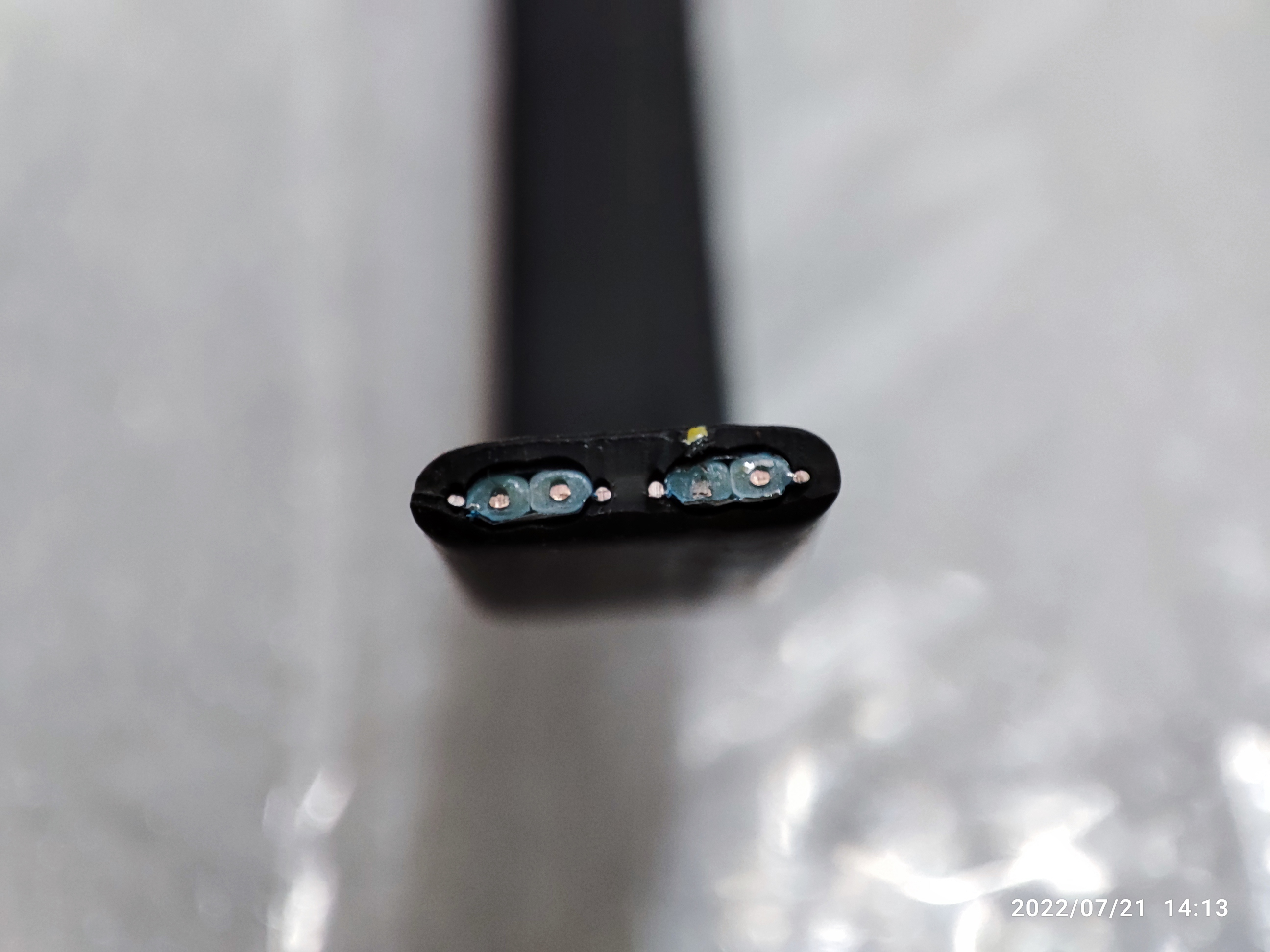 요즘 나오는 검은색 사타케이블이 조금 더 구성이 알차네요. 케이블 중간에 막도 있고 중심에 전선이 2개가 박힌 건 검은색 케이블 밖에 없습니다.